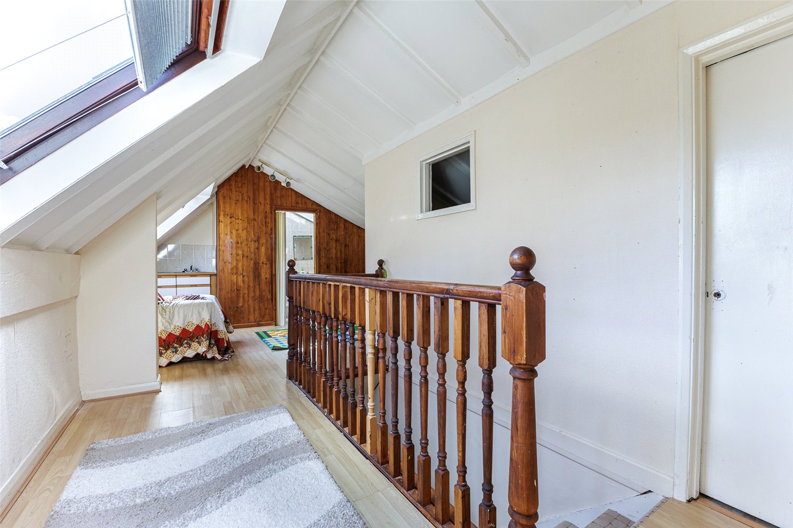 Loft Room 24'8" (7.52m) x 19'9" (6.02m) overall A versatile room ideal as a teenagers den with two Velux windows to rear, panelled radiator, storage at eaves level, inset stainless steel sink and drainer with mixer tap.