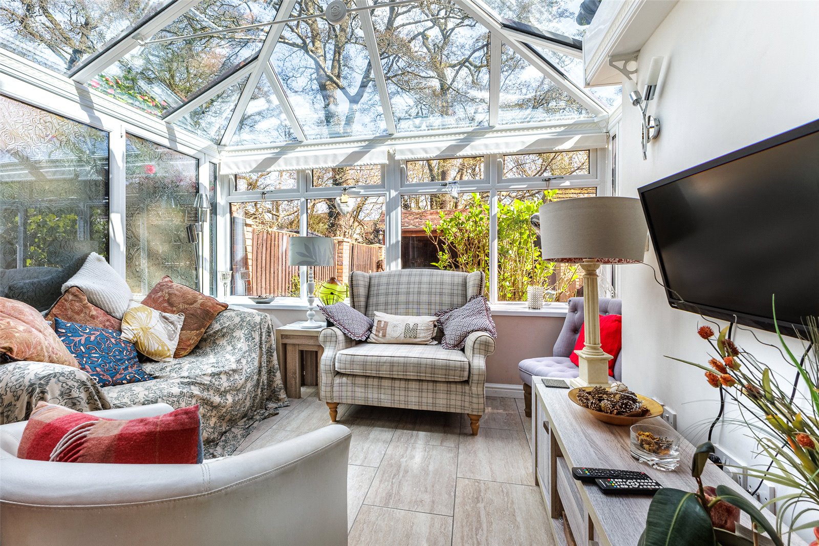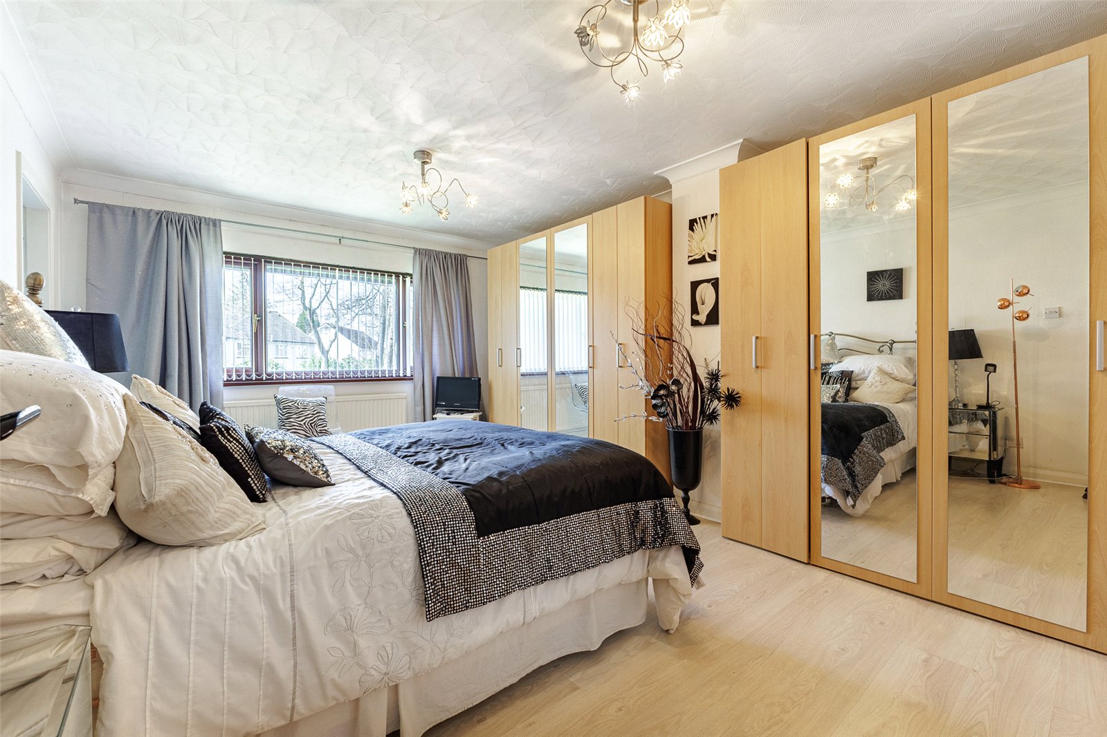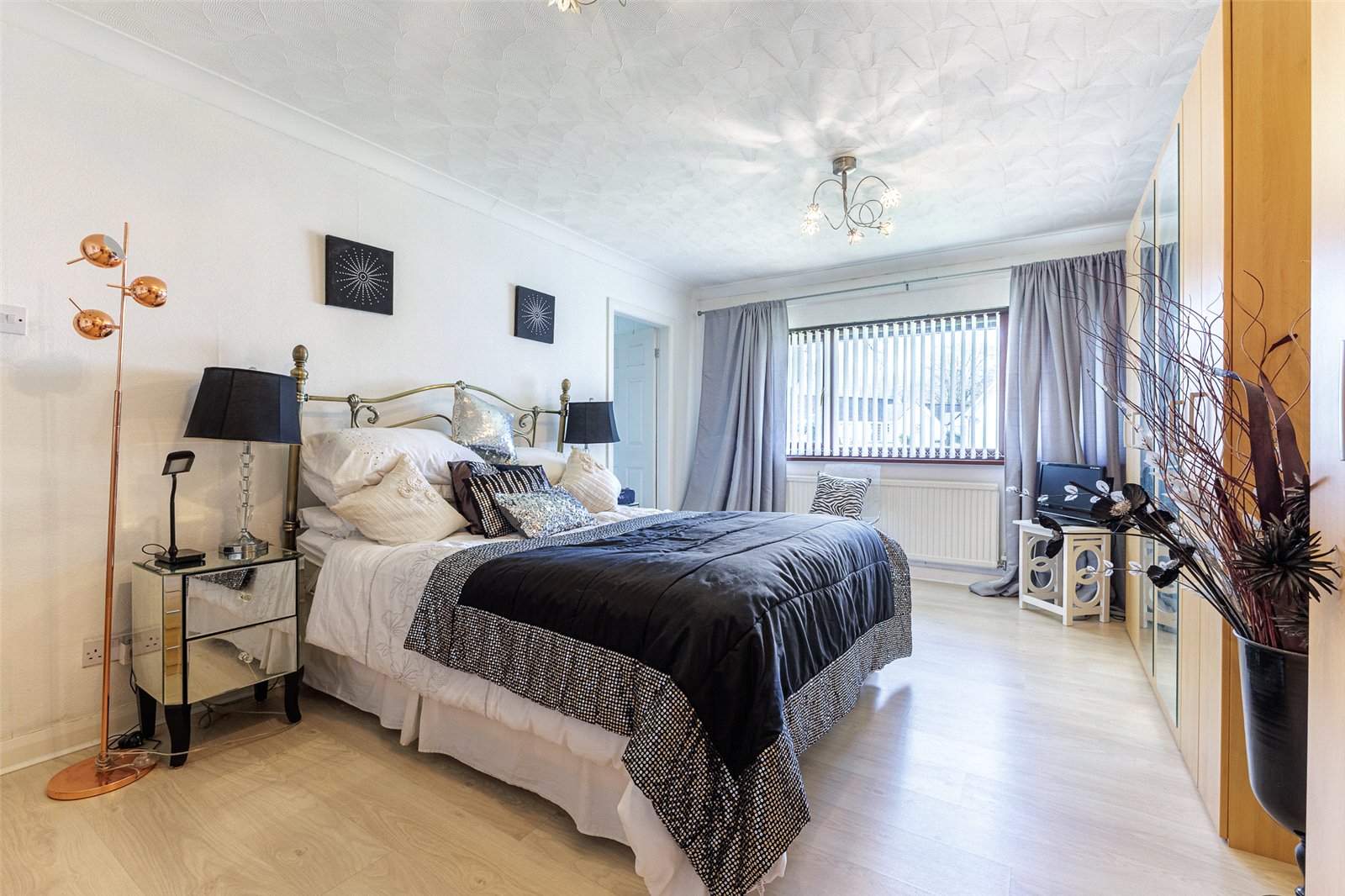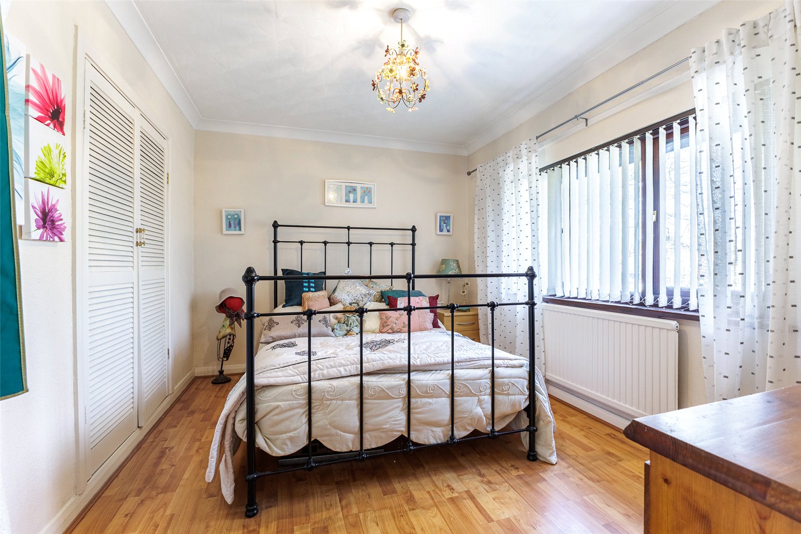 Bedroom 1 17'2" (5.23m) x 12'1" (3.68m) Overlooking the head of the Close and lawned side gardens, laminate flooring, panelled radiator.