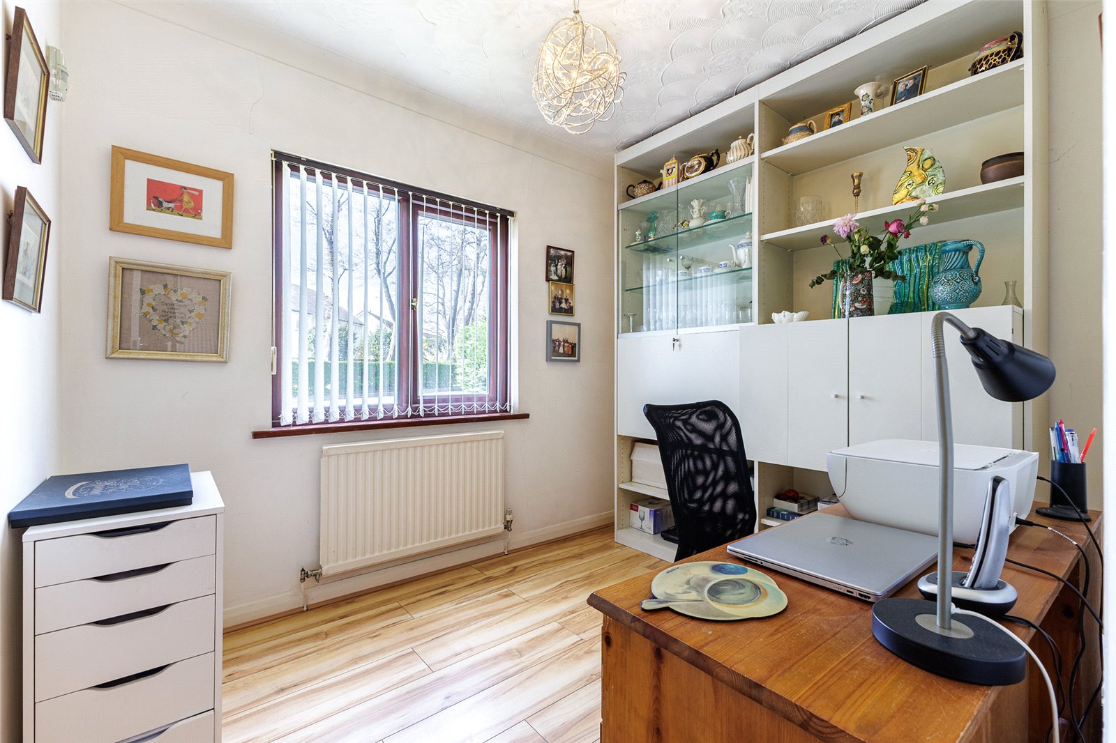 Study 9'5" (2.87m) x 7'9" (2.36m) Aspect to side garden entrance approach, laminate flooring, panelled radiator, fitted display/shelving cabinet.